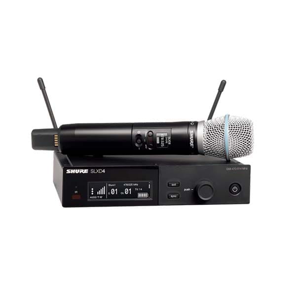 El sistema SLXD24 / B87A de Shure es un sistema de micrófono de mano de alta calidad para presentaciones en vivo. El sistema incluye el transmisor inalámbrico Beta 87A y el receptor inalámbrico compacto SLXD4. La tecnología inalámbrica digital de vanguardia de Shure ofrece una resolución de audio de 24 bits con una latencia casi imperceptible de 3,2 ms. Agregue el rango de trabajo de 100 metros (328 pies) y tendrá una receta para un potencial inalámbrico serio. Si está listo para dar el paso y darle a su sistema una actualización muy necesaria, no puede equivocarse con una configuración inalámbrica Shure SLX-D.